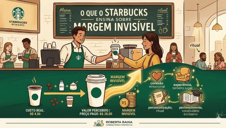 O que o Starbucks ensina sobre margem invisível 25 de Março de 2026 Escrito por: Ror Roberta Bahia O café que vale mais do que café Todo mundo já entrou em um Starbucks. Talvez você tenha pedido um Caramel Macchiato, escrito seu nome no copo, sentado em uma poltrona confortável com o notebook aberto e […]